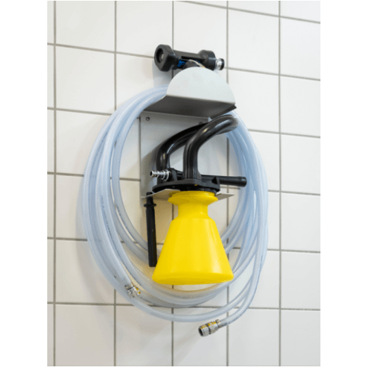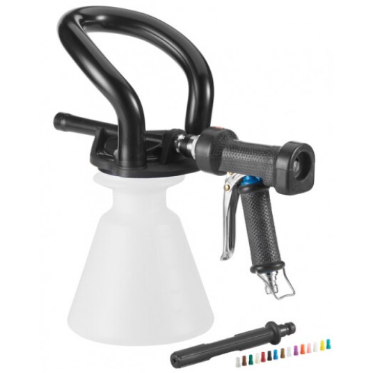 Zestaw spieniający pozwala z łatwością poradzić sobie z zadaniami czyszczenia na dużą skalę. Niezależnie od tego, czy czyścisz ściany w środowisku przetwórstwa spożywczego, czy myjesz podłogi w prysznicach, studiach fitness, basenach lub innych miejscach, zestaw do spieniania wykonuje pracę przy stałym dozowaniu chemikaliów (0,4-10%, w zależności od zaleceń producenta). Może wytrzymać ciśnienie 8 barów i ma ergonomiczny uchwyt, który nie ślizga się, nawet gdy jest mokry. Każda wersja jest dostępna w 5 kolorach i ma zestaw 15 dysz oznaczonych kolorami dla różnych stężeń środków chemicznych. Nigdy nie należy przepuszczać środków chemicznych bezpośrednio przez pistolet do spieniania. Dane techniczne: