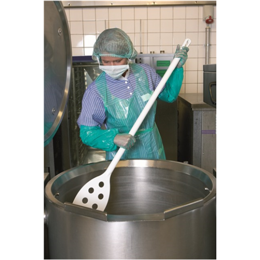 To w pełni formowane mieszadło ma długi uchwyt i małe ostrze z otworami. Nadaje się do mieszania składników żywności w dużych garnkach i kadziach, a otwory ułatwiają mieszanie, umożliwiając składnikom przechodzenie przez ostrze mieszadła. Dane techniczne: